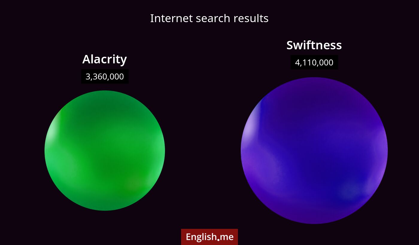 Les deux mots "alacrity" et "swiftness" expriment une certaine rapidité dans l'action. Ils impliquent tous deux une action effectuée dans un temps court.
