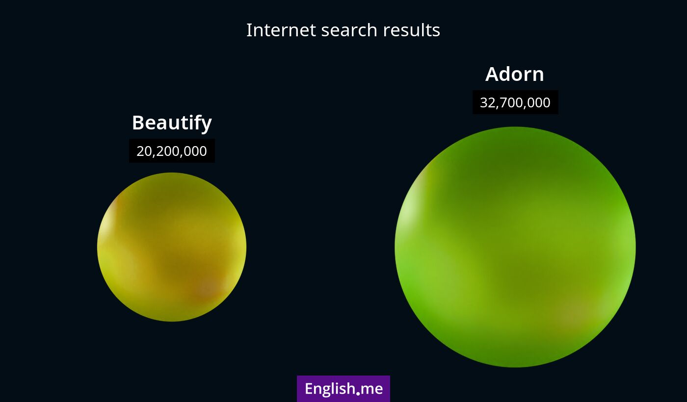 Les mots "beautify" et "adorn" signifient tous les deux rendre quelque chose plus beau ou attrayant.