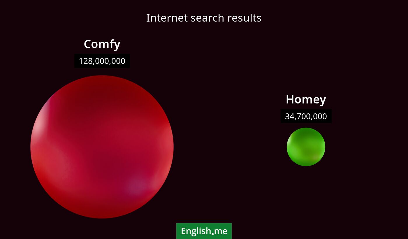 Les deux mots "comfy" et "homey" évoquent une sensation de confort et de bien-être.