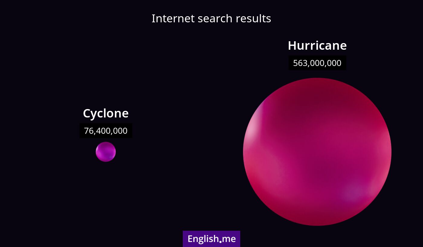 Le mot "cyclone" est utilisé de manière générique pour décrire ce type de tempête dans de nombreuses régions du monde, tandis que "hurricane" est spécifiquement utilisé pour de telles tempêtes dans l'océan Atlantique et le nord-est du Pacifique.