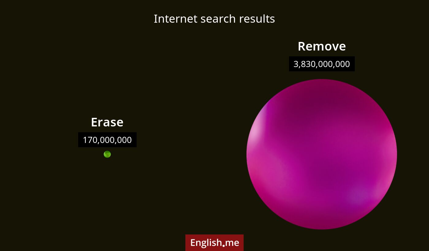 Les deux mots "erase" et "remove" impliquent l'action de faire disparaître quelque chose. Ce sont des verbes qui peuvent indiquer la suppression ou l"élimination de quelque chose.