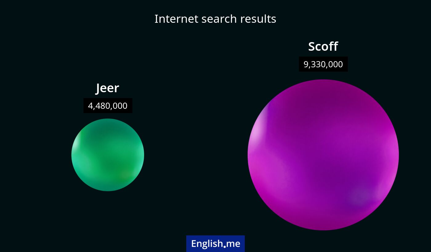 "Jeer" (huer, railler) contre "Scoff" (rire de, se moquer de)