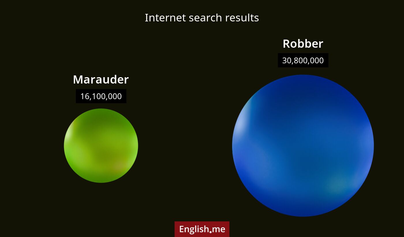 Les deux termes "marauder" et "robber" se réfèrent à des personnes qui prennent la propriété d'autrui sans autorisation. Ils impliquent tous deux des actions de vol.