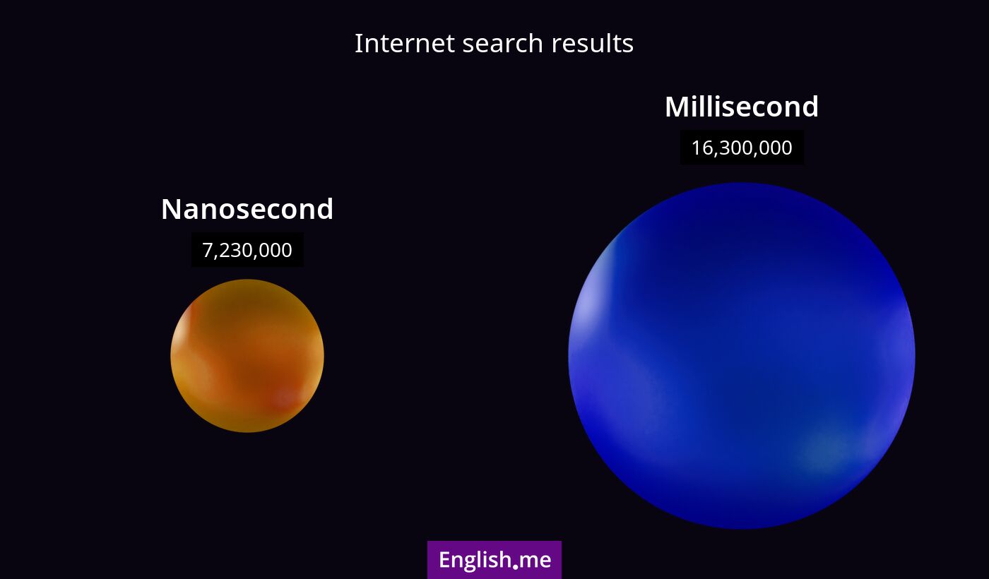 La principale différence entre les deux mots est leur valeur numérique : un nanoseconde est un milliardième de seconde, tandis qu'un milliseconde est un millième de seconde. Ainsi, une milliseconde est un million de fois plus grande qu'une nanoseconde.