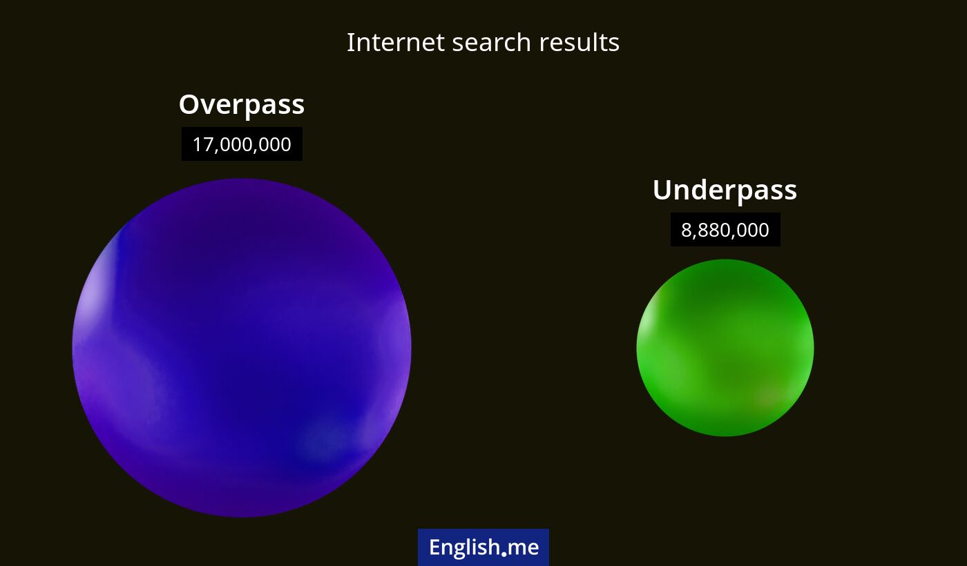 « Overpass » se réfère à un pont qui passe au-dessus d'une autre route, tandis que « underpass » désigne un passage souterrain en dessous d'une route.