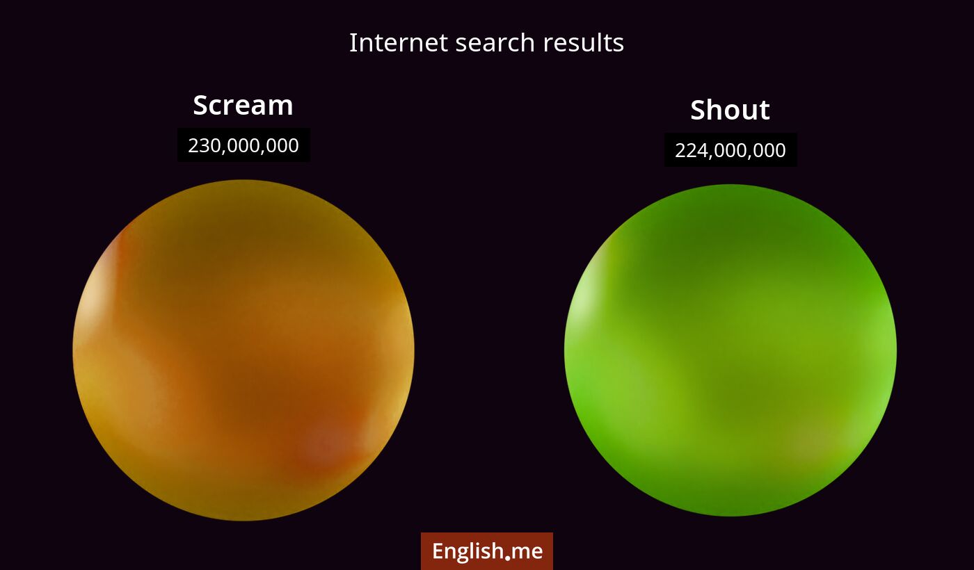Les mots "scream" et "shout" impliquent tous deux l'action de produire un son fort avec la voix.
