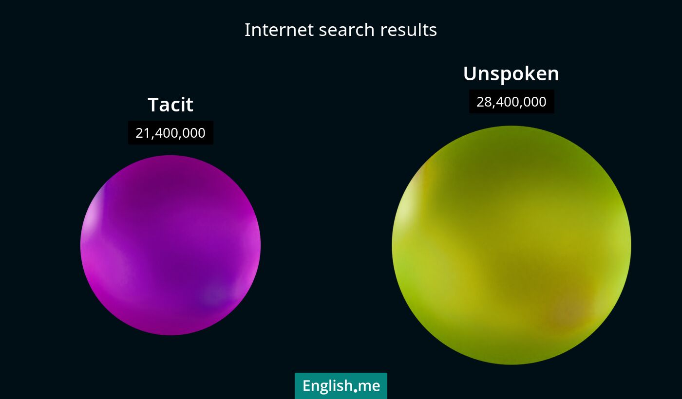 Les mots "tacit" et "unspoken" désignent tous deux quelque chose qui n'est pas exprimé verbalement, mais compris ou implicite.