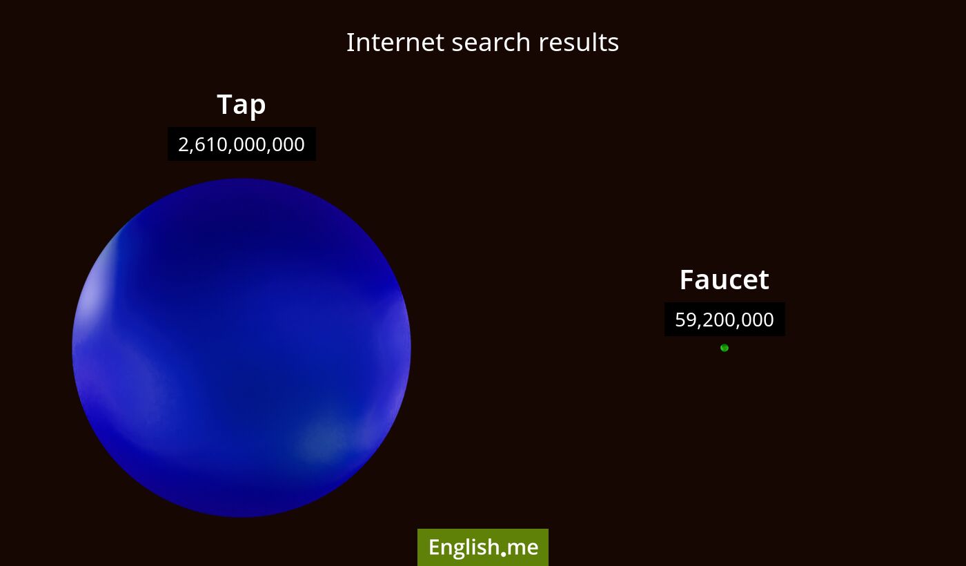 Le mot "tap" est plus général et couramment utilisé en anglais britannique, tandis que "faucet" est plus spécifique et souvent utilisé en anglais américain; "faucet" réfère généralement à un robinet fixe, tandis que "tap" peut aussi signifier taper légèrement.