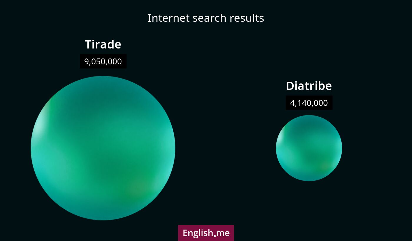 "Tirade" (tirade (en français également, désignant un discours long, emphatique ou critique).) contre "Diatribe" (diatribe (en français aussi, mais avec le sens d’une critique virulente et acerbe).)