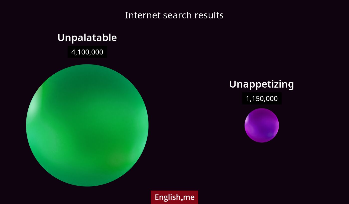 "Unpalatable" (impropre à la consommation) contre "Unappetizing" (peu appétissant)
