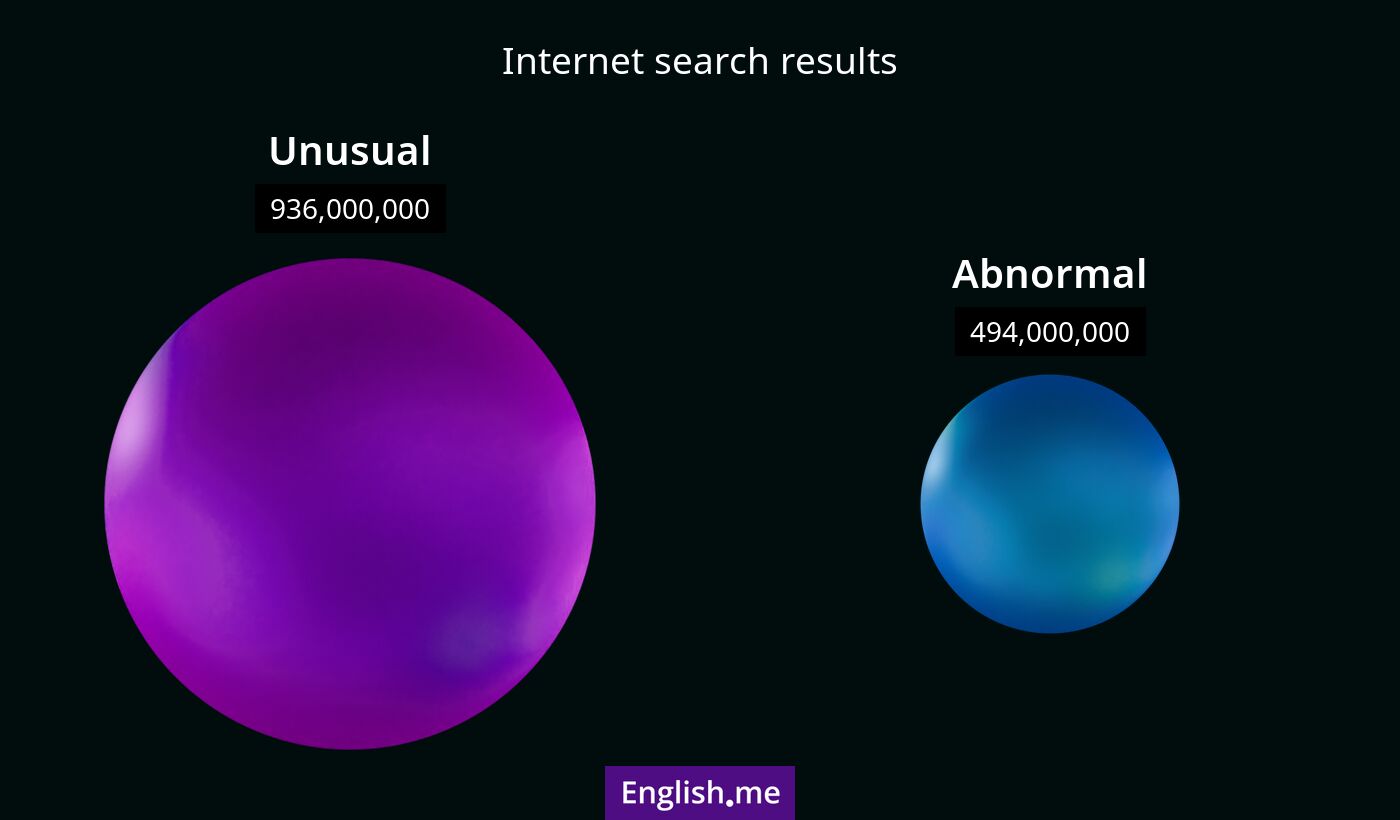 Les mots "unusual" et "abnormal" peuvent tous deux indiquer quelque chose qui sort de l'ordinaire ou qui diffère de la norme attendue.