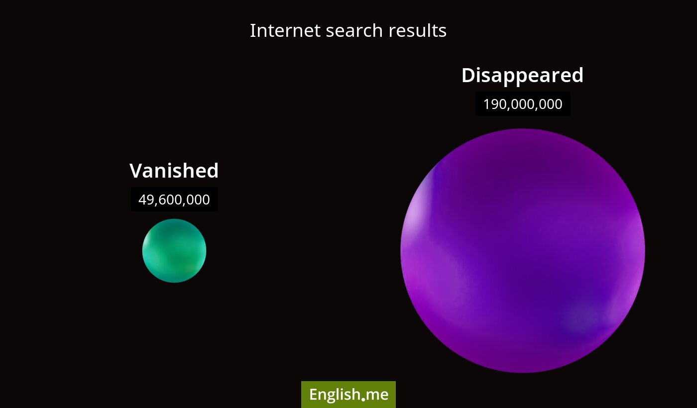 "Vanished" (disparu(e)/volatilisé(e)) contre "Disappeared" (disparu(e))