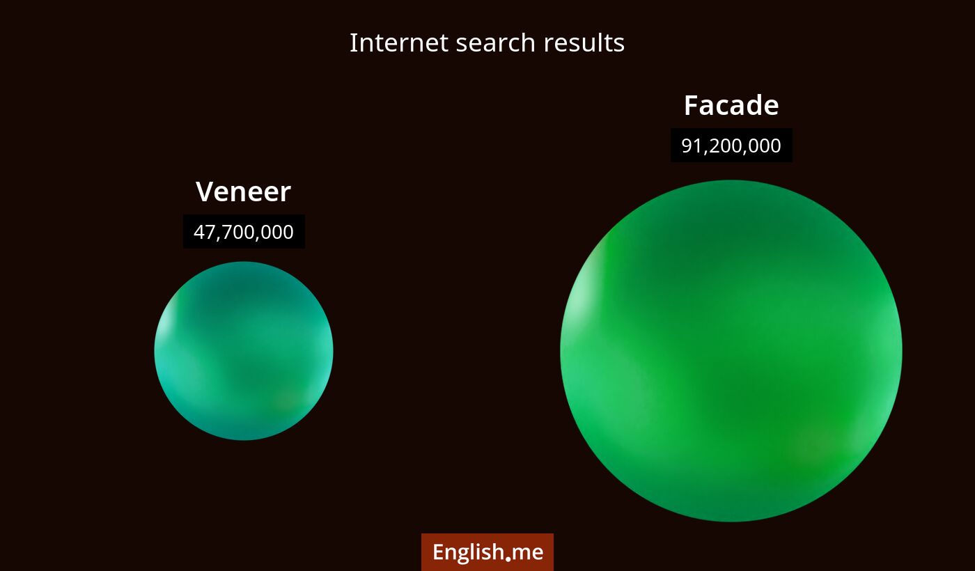 Les mots "veneer" et "facade" désignent tous deux une couche extérieure ou une surface apparente qui peut cacher la réalité sous-jacente.
