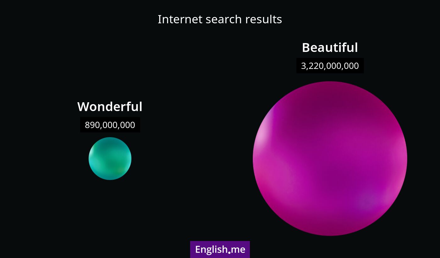 « Wonderful » met l'accent sur une sensation de plaisir et de joie, alors que « beautiful » est plutôt une appréciation esthétique. « Wonderful » s'utilise pour des expériences ou des compétences, tandis que « beautiful » s'applique souvent à la vue ou à quelque chose de visible.